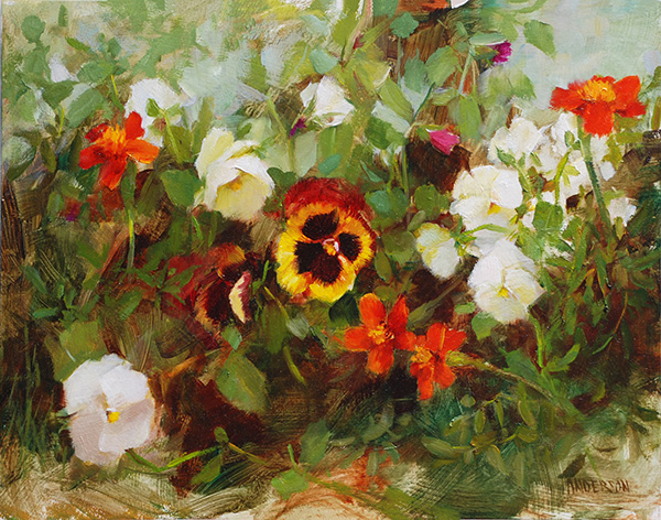 Nasturtiums in a Green Bowl, 11 X 14, SOLD
