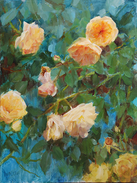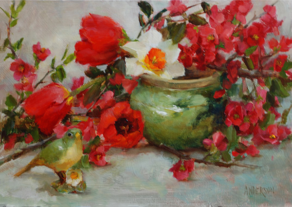Spring with Quince and Tulips, 10 X 14 SOLD