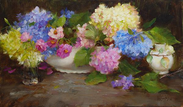Blue Hydrangea with Cosmos