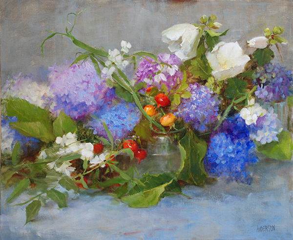 Blue Hydrangea with Rose Hips