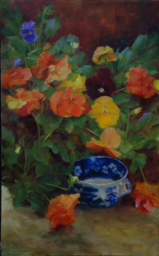 English Blue and Orange Pansies