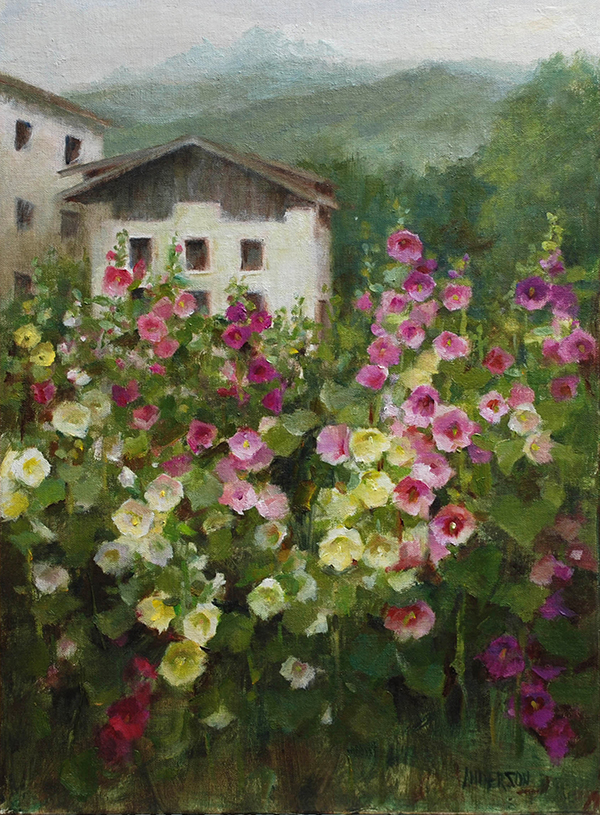 Hollyhocks in the Dolomites