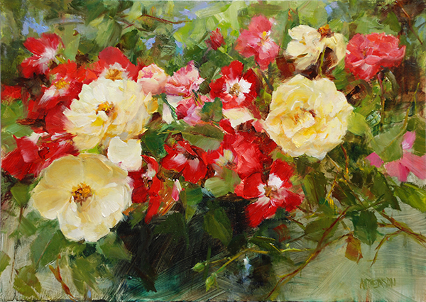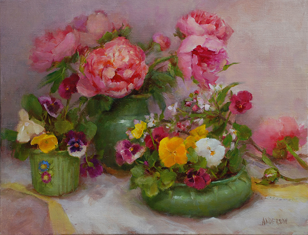 Peonies, Pansies and Apple Blossoms, 14 X 18