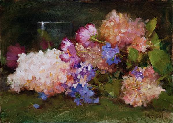 Hydrangea with Cosmos and Ageratum, 10 X 14 SOLD