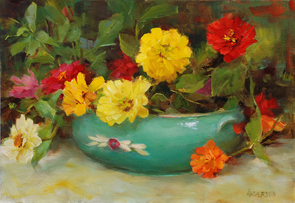 Mixed Zinnias in Blue