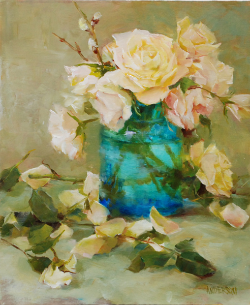 Sea Blue with Roses