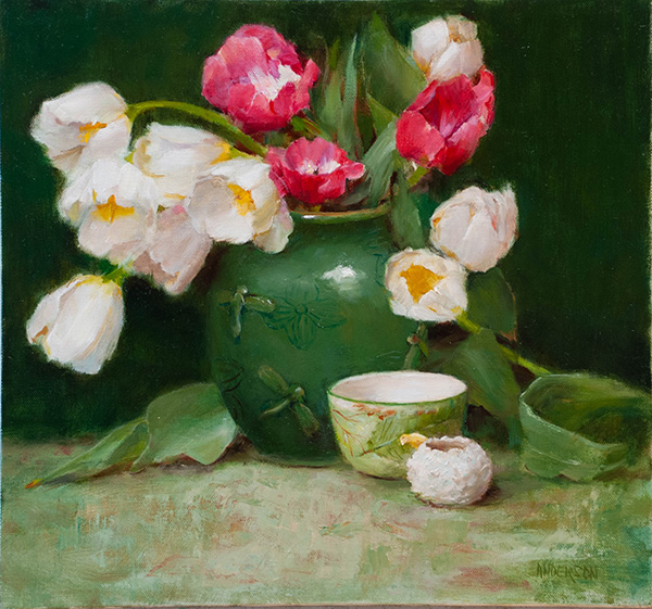 Tulips with Dragonfly Vase