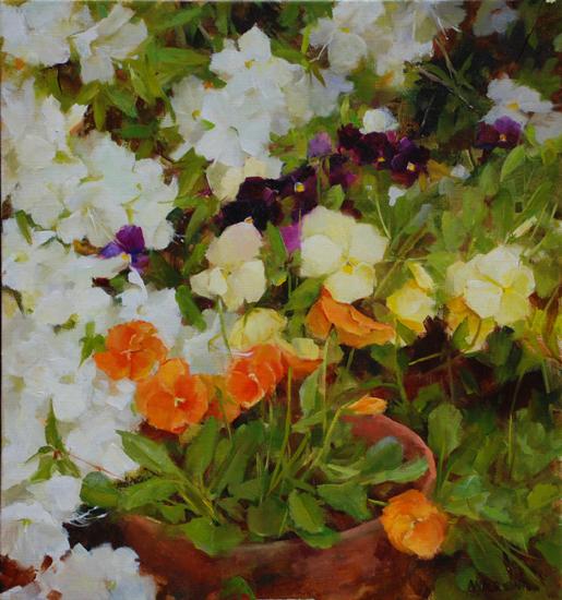 White Azalea and Pansies